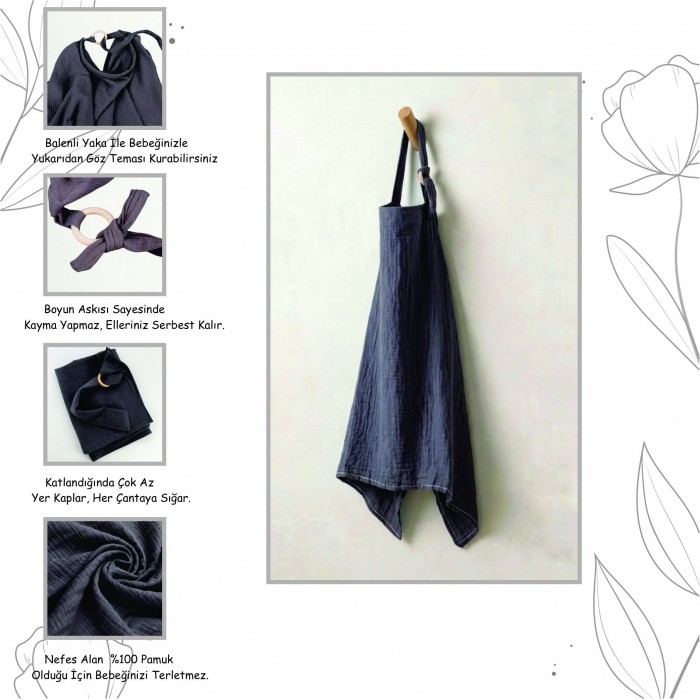 Emzirme önlüğü sadece emzirme sırasında değil; aynı zamanda bebek arabasında güneşlik, omuz örtüsü veya bebeği uyuturken hafif bir örtü olarak da kullanılabilir.