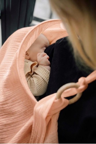 İhtiyaç anında bebeğin üzerine örtülebilecek ince ve nefes alan bir battaniye görevi görür.